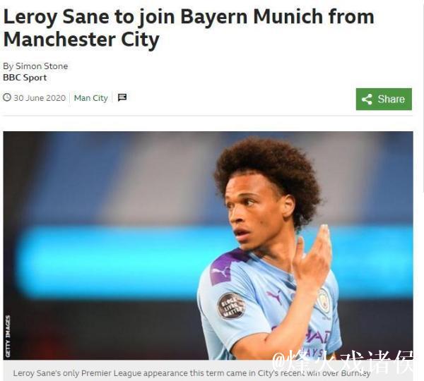 官方确认!曼城边锋萨内转会拜仁,6000万欧签约五年官方确认!曼城边锋萨内转会拜仁,6000万欧签约五年